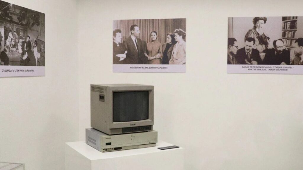 Көрмеге алғаш рет мәтін басып шығарған машина мен монтаж үстелі, фотоаппарат, диктофон мен видеокамералар қойылды. «Қазақ журналистикасы: өткені мен бүгіні» экспозициясы «Қазақ басылымдарының тарихы», «Қазақ радиосының даму жолы», «Қазақ телевидениесінің 65 жыл ішіндегі жетістігі» атты үш бөлімнен тұрды.
